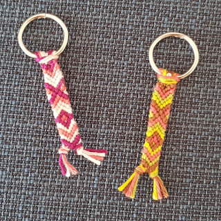 In early August I visited my friend Kristin as well as my wonderful god daughter in Gera. A couple of week prior to the trip we decided to make some friendship bracelets during our stay. So for the hostess gifts I took up the theme and created some small friendship bracelet key chains.